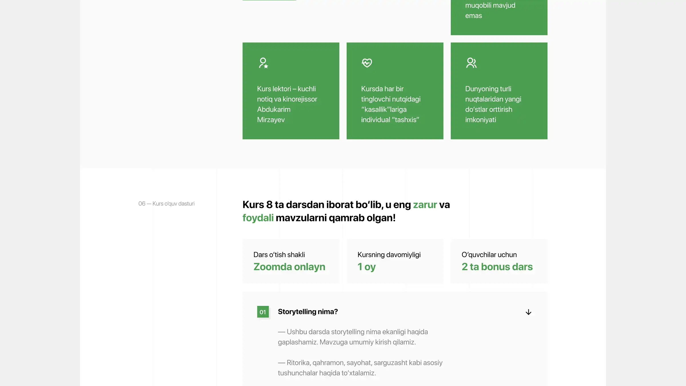 Abdukarim Mirzayev — storytelling kursi veb-sayti