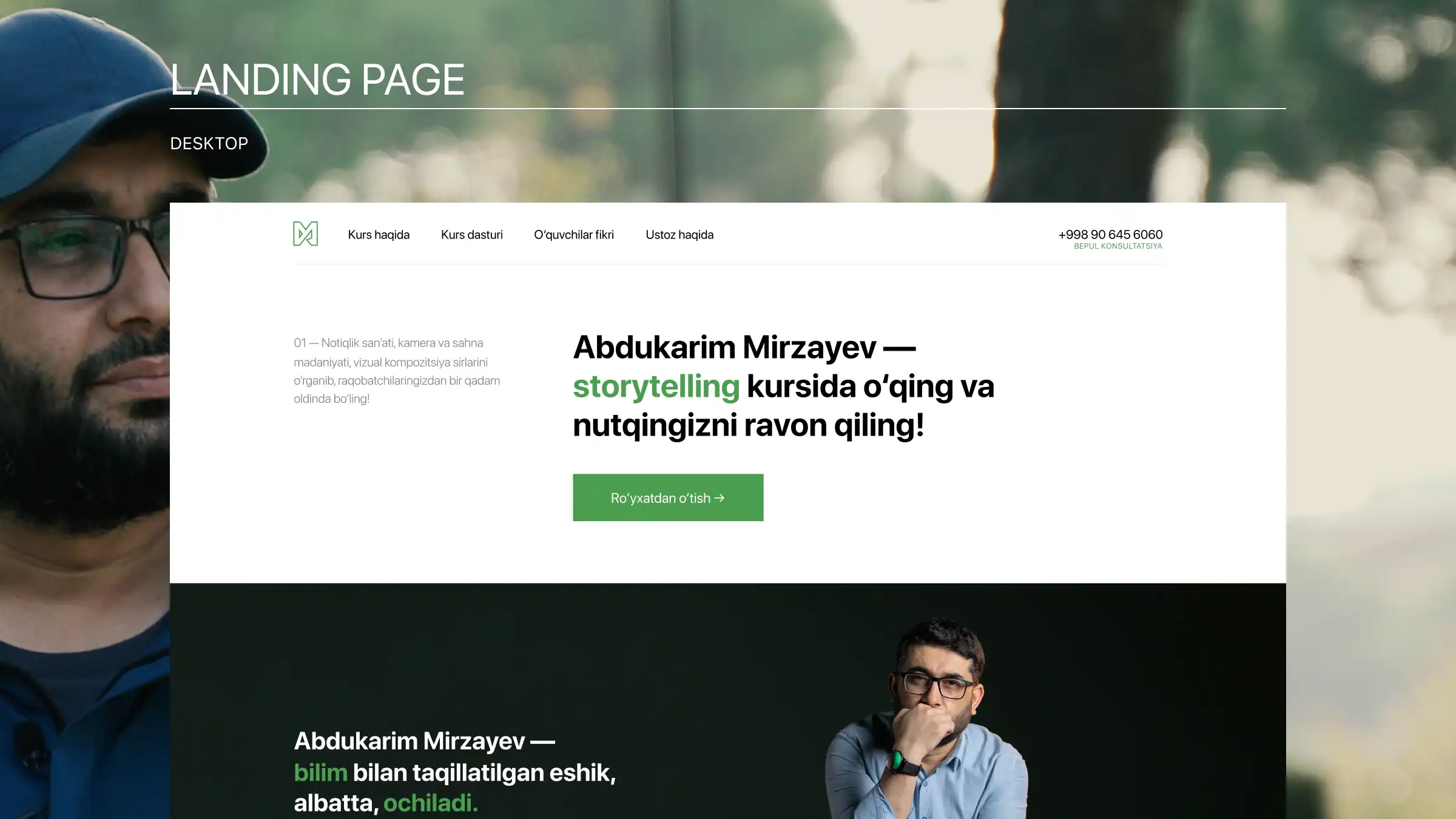 Abdukarim Mirzayevning Storytelling kursi — bu shunchaki ta'lim emas, balki fikr va so'z san'atiga sayohatdir. Biz ushbu loyihada muallifning chuqur falsafasi va ijodiy olamini raqamli makonda aks ettiruvchi unikal veb-sayt yaratdik.