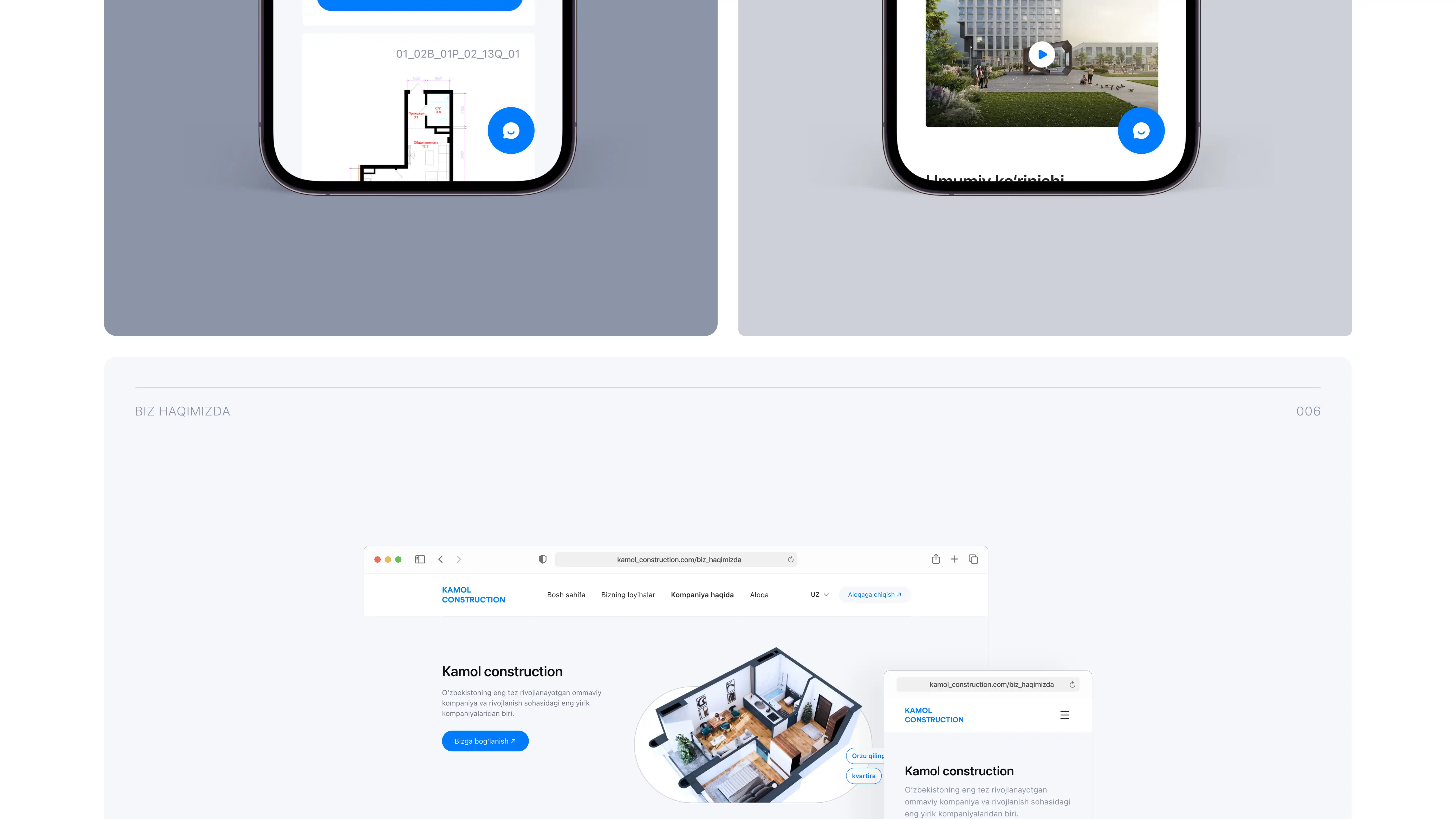 Kamol Construction — mijoz uchun loyiha taqdimoti