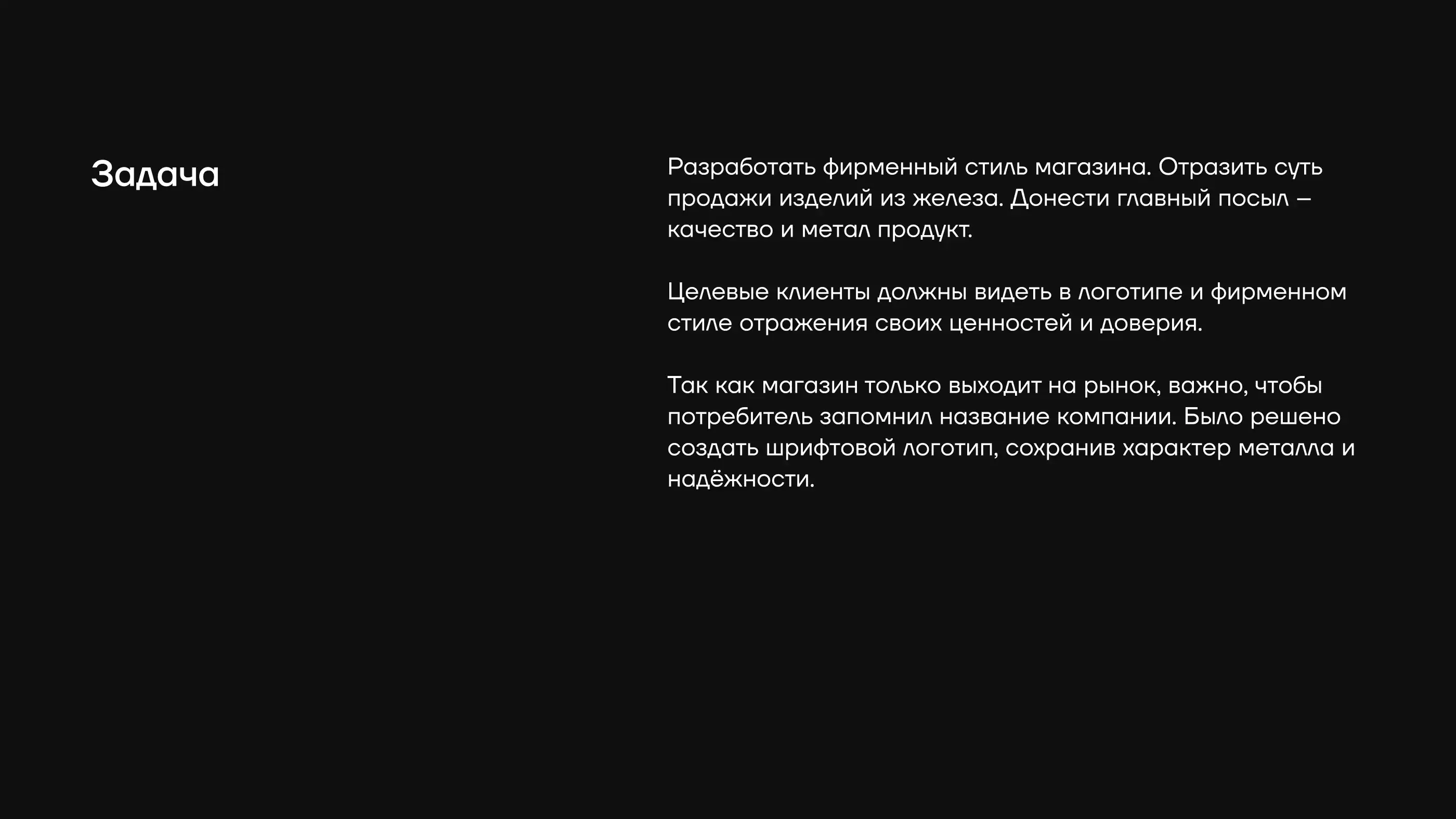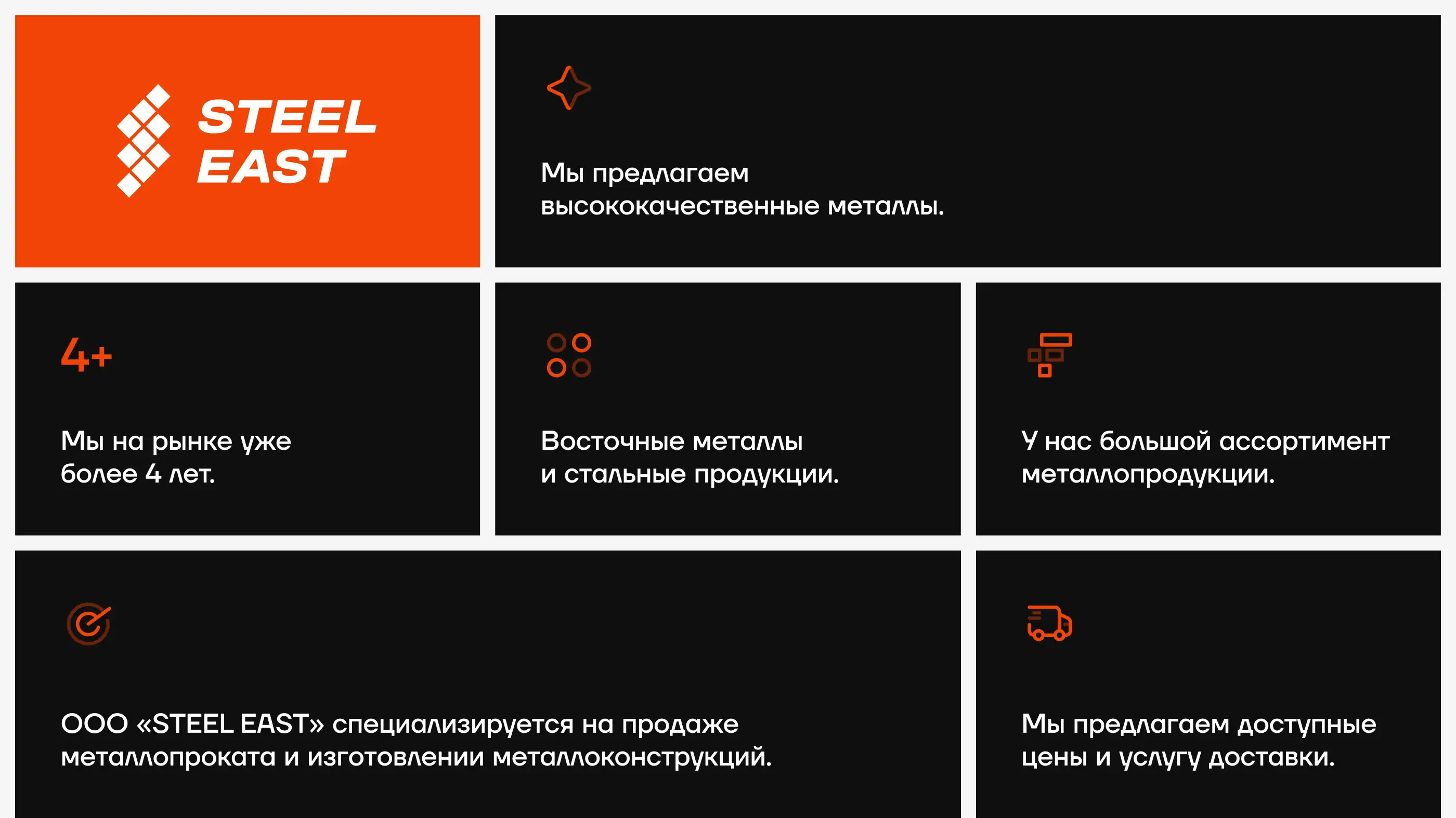 Steel East brendining bozordagi tanilishini oshiruvchi, geometrik aniqlik va sanoat estetikasini o'zida mujassam etgan zamonaviy vizual tizim yaratildi. Bu brendning B2B segmentidagi nufuzini oshirdi.
