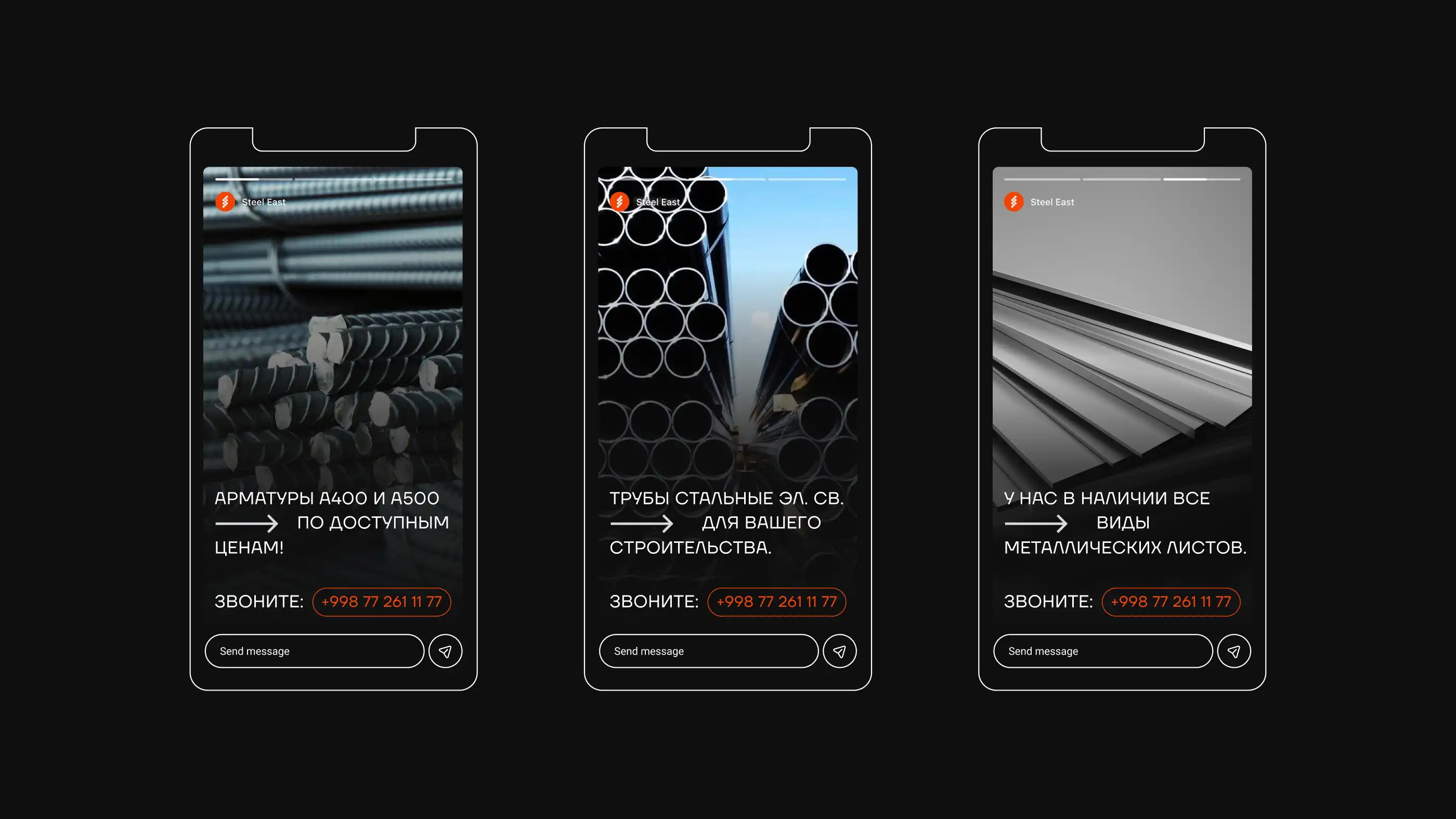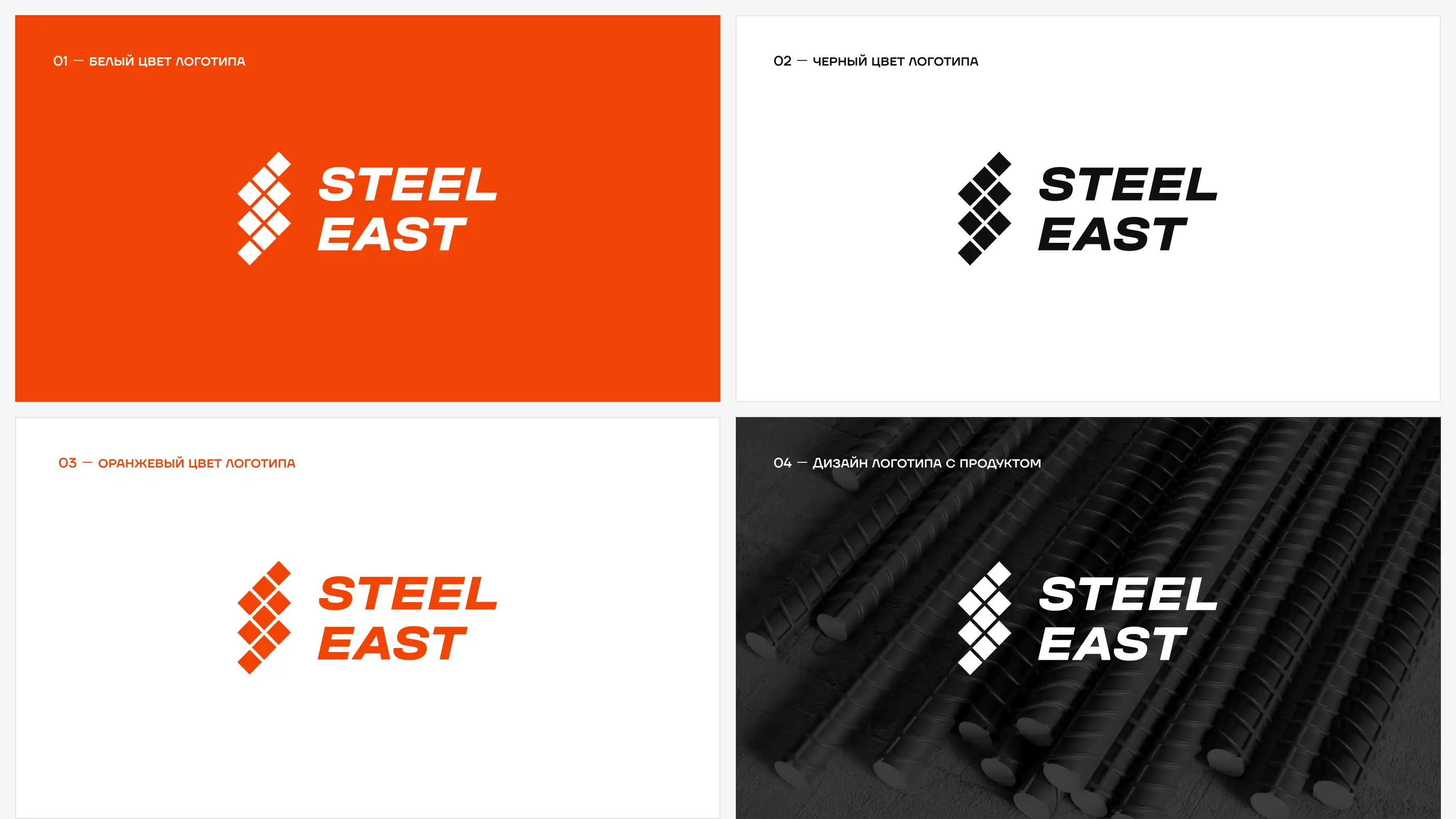 Steel East — metallurgiya va po'lat sanoatida faoliyat yurituvchi yirik kompaniya bo'lib, uning yangi qiyofasi barqarorlik va mustahkamlik ramzi bo'lishi kerak edi. Bizning vazifamiz kompaniyaning xalqaro bozorlardagi ambitsiyalariga mos keluvchi korporativ brendingni yaratishdan iborat bo'ldi.